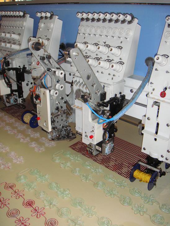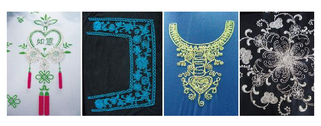 簡易刺繡系統(tǒng)。其在平繡基礎(chǔ)上,增加了分頭控制簡易盤帶繡(盤帶 繡和鋸齒繡等)的功能,基本實(shí)現(xiàn)了傳統(tǒng)盤帶繡的所有功能,繡作效 果也有顯著提高,更好地滿足了實(shí)際繡作過程的需要。不占用單獨(dú)機(jī) 頭位,并且和金片裝置一樣,可以加裝在首、末針位置,有效的節(jié)省 空間。安裝方便,簡單易用,運(yùn)轉(zhuǎn)速度顯著上升,補(bǔ)繡質(zhì)量和生產(chǎn)效 率也得到很大提高,真正實(shí)現(xiàn)了速度與繡品質(zhì)量的完美結(jié)合, |