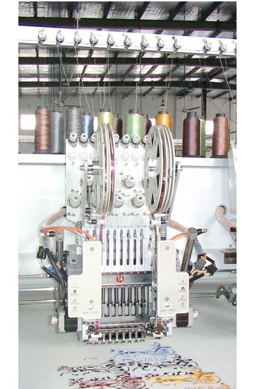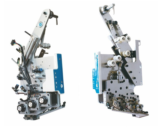 多可以安裝4種金片在單個頭上2種金片可以有不同的尺寸, 不同的形狀可以同時安裝在左右兩側, 由此, 最多每頭可以裝4種金片在每個機頭上, 金片的尺寸從3mm到9mm.采用直線導軌控制升降,保證升降順暢,送片與刺繡穩(wěn)定。由電腦控制裝置機械部分實行自動化換片。達到兩種規(guī)格亮片之間自動轉換,無需人工調試??梢酝瑫r繡兩種不同規(guī)格或同一規(guī)格亮片。普通繡花機和高速機都可以安裝。